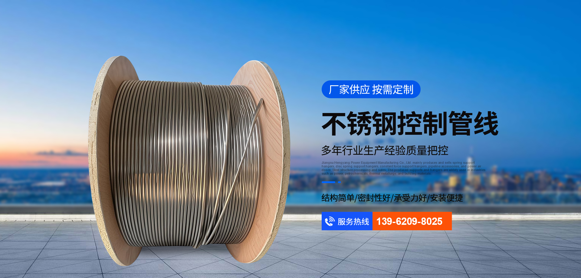 公司专业从事不锈钢连续油管、不锈钢控制管线、不锈钢盘管、不锈钢包塑管、不锈钢测试电缆、不锈钢毛细管的研发 、生产、销售和售后